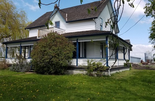 This five bedroom farmhouse is located on a working farm and has a fenced yard and separate driveway for guests. Tractors access another driveway and fields on a daily basis. There are two floors with a bathroom on each level. The house is over one hundred years old and has lots of room for several guests. Close to shopping, downtown Vancouver, Ferry Terminals and Border Crossings. There are several activities close by such as horse back riding, the bird sanctuary, Centennial Beach and several golf courses. It is close to the local ski mountains and hiking such as the Chief and Grouse Grind with Whistler mountain being two hours away. You can also go sturgeon fishing on the Fraser River which is fifty minutes away. The highway is close by which allows you quick access to Vancouver, Richmond, Langely, Abbotsford etc. It's also thirty minutes or more to Stanley Park, Capillano Suspension Bridge, Van Dusen Gardens, River Rock Casino and unlimited restaurants without paying the high cost of staying in the City. Located in a country setting but central to many activities.