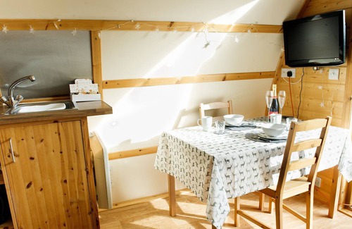 Whitemire pod has electric heating and is fully equipped to enjoy a peaceful break away at any time of year. The comfy sofa overlooks the TV and can convert to a double bed. The kitchen has electric oven, hob and fridge with complimentary tea and coffee. There is a comfy double bed with linen and towels provided and en-suite shower room with hand basin and WC.