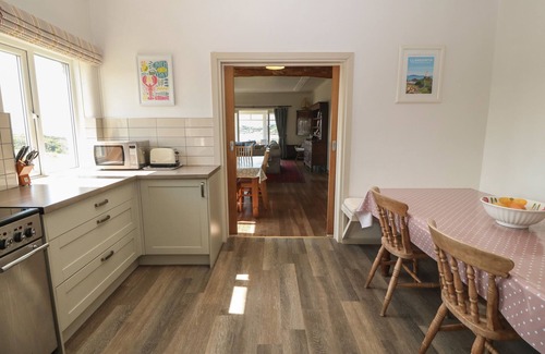 This property has a kitchen with electric oven and hob, microwave, fridge/freezer, dishwasher, utility with fridge and freezer, cloakroom, a living/dining room with dining seating, TV and wood burner (logs not included), and sunroom with access to balcony. The bedrooms consist of a ground-floor king, a ground-floor twin bunk, a king, a twin and cot room, along with a shower room and a ground-floor bathroom. The twin bunks are best suited for children. Outside there is ample off-road parking and a garden with access to a private beach. Please note two well-behaved pets are welcome but sorry, no smoking. Highchair and cot. Fuel, power, bed linen, towels and WiFi included in the rent. Indulge in the breath-taking scenery of Anglesey with a stay at Wig Carna. Note: Property accessed by causeway, when the tide is in you will have to park a short distance from the property. Note: RAF base close by, some associated noise may be heard. Note: Cot room accommodates a baby only. Please note that property can only accommodate week long stays from May through to the end of September.