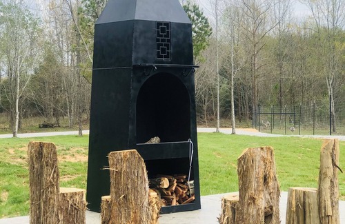 Picnic Pavilion, grills, playground, fire pit, swings, games, petting zoo, hand sanitizer, WiFi, hand soap, toilet paper, linens, towels, hand towels, refrigerator, microwave, coffee maker with pods, coffee cups, heating/air conditioning, parking, and TV.