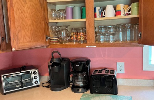 Enjoy cooking? Then make use of the full kitchen, complete with gas range, dishwasher and full size refrigerator. The kitchen is fully equipped with dishes, silverware, glassware, pots and pans, 2 coffeemakers (Keurig and coffee pot), microwave, toaster, toaster oven, blender and crockpot.