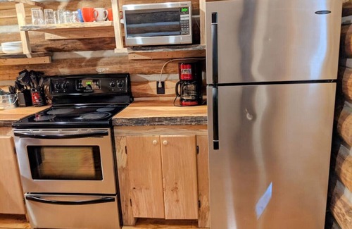 You will have lots of privacy and will likely only glimpse a couple people as your cabin is located beside just one other. The property owners live on the other side of the creek so you although you won't see them, they aren't far if anything is needed.