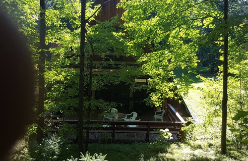 Classic A Frame Retreat only 2 miles from ski windham on private 5 acre lot with new cental A/C. This extra large clean and comfortable A frame has 3 full bedrooms plus an additional loft with a Queen Bed. One of the best locations in windham (1.5 miles to town and restaurants) yet secluded and private with open fields and a mountain to run around and explore on.