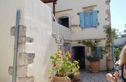 A two storey house with two bathrooms, air-conditioning, central heating, wifi. Upstairs Double bedroom air conditioning mosquito net En-suite bathroom Two roof terraces central heating Downstairs Bed/living room En-suite shower room log fire mosquito nets air conditioning TV & DVD central heating Well-equipped kitchen. private gated garden courtyard Also free wireless broadband internet air - conditioning & central heating included Own entrance and parking. Washing machine in service room/laundry. The Wine Press House is a two storey village house with terraces & courtyards, sleeping up to 4 people, extremely comfortable for two. The original exterior stone steps lead up to the double bedroom and terraces. Double doors open from the downstairs room in to this garden courtyard which has a garden table and chairs, outside shower and a large parasol, trees and pots with flowers. Surrounded by stone walls and a gate this courtyard is totally private.