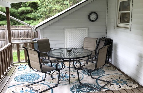 Charm and comfort abound in this home - original hard wood floors are located throughout and comfortable living room seating with cable TV and blu-ray player to catch up on your movie watching. There is a large dining table to sit and eat, play games or put together a puzzle. A fully fenced in backyard with large covered deck provides a great place to relax and unwind with that bottle of wine you purchased. The kitchen is well appointed and includes, for coffee lovers, your option of either a Keurig or brewed coffee maker.