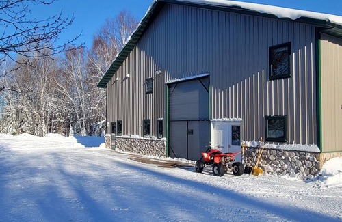 This is a 2000 sqft home with 4 bedrooms and 2.5 baths is built inside of a large garage. Its a mans dream home. The house is well insulated and cozy with in-floor heat and custom woodwork trim. The large windows let in lots of light and views of the country. This is a location on 20 acers of land with a pond down below the house. The snowmobile trail is just 2 miles down a back road that can be ridden to from the house. There are many lakes just miles away. Its 18 miles to Ashland and 32 miles to Mt Ashwabay Ski and Recreation Area.