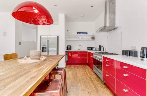 The kitchen is complete with an oven, 5 burner hob, microwave, kettle, air fryer, dishwasher and American-style fridge/freezer, providing everything needed for even the most ambitious of chefs to concoct a delicious, hearty meal for the whole group to enjoy together around the dining table. In addition to the dining table, the large seating area, kitchen island and surrounding bar stools provide even more space for guests to gather and socialise.