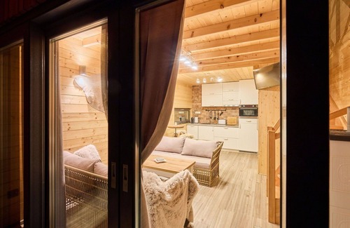 The upper floor of the chalet has 1 room with a double bed and a gallery with a double sofabed and TV, which exits to the balcony. The chalet features internet (WiFi, free), a built-in bluetooth audio system, and central touch control of lighting and temperature that can be conveniently operated from the living room. Please note that instead of an enclosed bedroom, some sleeping areas are located in an open-plan area (gallery, alcove, etc.). This is a non-smoking house suitable for families.