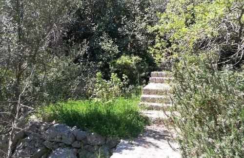 Villa Le Sciarre benefits of a gated, private access to the sea: A beautiful path of stone stairs leads down through the Mediterranean vegetation to a rocky cove with deep blue water. A concrete platform and stone stairs allow one to dive into the sea. Please note that the access to the sea is just 100 metres away but the path (160 steps without railing or any protection) is in part steep and might be a little bit dangerous.