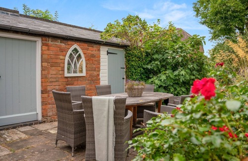 On the ground floor, there's a spacious and characterful living room with oak beams and a huge inglenook, whilst the study offers a place to work or just curl up with a good book in front of the wood-burning stove. The gorgeous dining room seats eight guests in comfort and leads to the well-equipped kitchen next door. A hallway runs the length of the house leading to the stairs, a useful ground-floor cloakroom and several doors to the garden. The first floor is home to the glorious, light-filled master bedroom which has oodles of space and a fabulous ensuite bathroom, complete with a shower and standalone bath. There are two further bedrooms, a twin (which can be a super-king on request) and a double, along with the family bathroom with a shower and a slipper bath. On the second floor, tucked into the eaves is a cosy twin bedroom.
