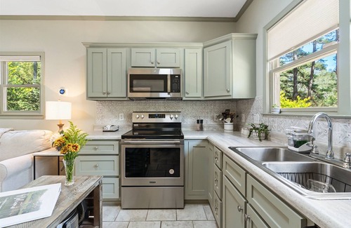 *** The kitchen is fully equipped with everything you need including: cutting boards, mixing bowls, baking pans, cooking pots, skillets, a slow cooker, Instapot, pizza stone, sharp knives, toaster, wine opener, wine glasses, blender and so much more! We also provide a roll of paper towels, food wrap, dishwasher detergent and laundry soap!