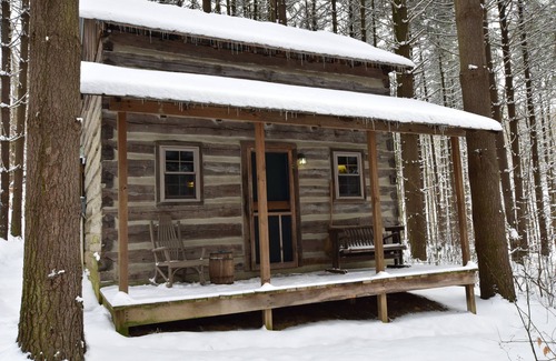 The cozy Green Log Cabin is the perfect romantic hideaway for couples looking for some quiet time alone. You can easily shut out the rest of the world in this cabin that features a living room, bath, dining area and a fully equipped kitchen on the main floor and a cozy king bed up in the loft. Gently tucked into the sensuous pine forest and the rolling hills of Southeastern Ohio, you can relax and unwind together by swinging on the front porch while watching for shooting stars, luxuriating in your own private hot tub and snuggling in front of the stone fireplace.