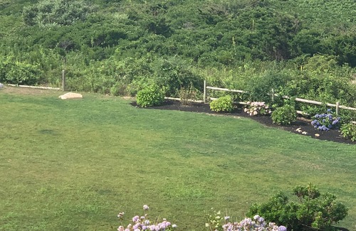 Free Internet: 300 MB upload. . Located on Dunes of Beautiful, Private White Sand Beach. 180 Degree Ocean View . Bright and cheerful, cozy two-bedroom cottage (sleeps five) sits on the dune along our gorgeous private sandy white stretch of beach. Perfect for swimming, sunbathing, boating, paddle boarding, sailing, and fishing. Monthly paddle board rentals available. Forget about driving or hiking to the beach. This home is located on your perfect white soft sandy beach in beautiful coastal Rhode Island. Put your car keys away. You'll never leave this place. Located a couple of hundred yards from the Point Judith lighthouse, this property sits on a point with sweeping views of Block Island, Narragansett Bay, and, of course, the beautiful lighthouse. This is perfect for kids and adults. Large hot and cold outdoor shower with ocean view. Located within the ocean breakwall, allows for swimming in calm waters or direct access to the open ocean. Your choice. Lowest price in the state for a beachfront location. This is not just waterfront, it is beachfront. (lower pricing during the off season)