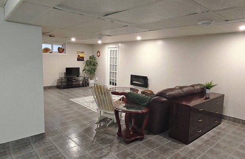You’ll land minutes from the airport in a private entrance, family-friendly, basement apartment suite with driveway parking and high-speed wi-fi. Sleep easily on a queen bed while kids claim the twin bunk. Cook in a full kitchen, stream Netflix on the smart TV, wander the half-acre forest yard, or hop on our bikes to parks, the casino, shops, and the new LRT. Backup generator, board games, workspace and washer make longer stays effortless. No pets/parties; quiet 11-7. Book your Ottawa work-play getaway today!