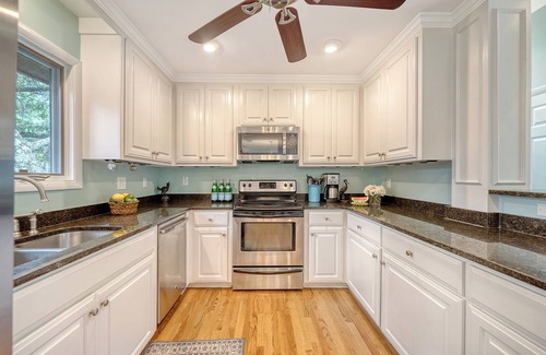 At this Oceanwoods cottage, you are just a short 250 yard walk to the beach. Conveniently located in West Beach, this three bedroom, two bath home offers a peaceful, wooded location for your vacation. This cottage has a wonderful screened porch and a deck with a gas grill. An outdoor shower on your deck welcomes you home from the beach. With three TVs and high speed wireless internet, you can also stay connected during your stay. This lovely property has sleeping accommodations for up to six people, with one king, a queen, and two twins. Recent updates include granite countertops and tiles showers.