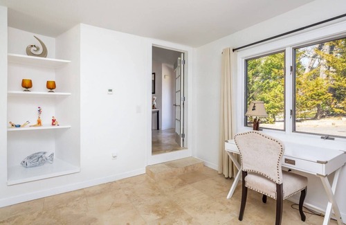 Renovated and newly furnished in a nautical/coastal vibe, the house features an open concept kitchen, dining, living room and bathroom on the 1st floor. The 2nd floor has 3 bedrooms & 2 full bathrooms. There is also another den with pull out sofa as well as an office area with desk for remote work. The master has an en-suite bath, walk in closet and lovely Juliet balcony. All bedrooms and living spaces are equipped with TVs. Luxury bedding is provided.
