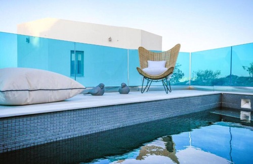 A celestial haven of harmony and joy where gentle relaxation and revitalisation are the only things on the agenda. Suitable for up to 6 people. Just 450 meters from the beach of Monolithos, this brand new villa and walking distance from the airport of Santorini (20min, only 2km away) and only 6km away from the Fira city center. BONUS: Free parking. Indoor jacuzzi. BBQ