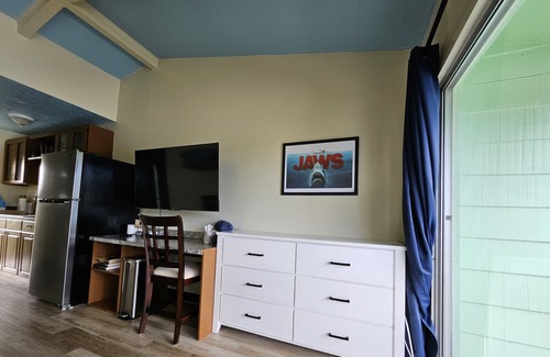 This newly renovated, Mano (Hawaiian for Shark) themed, self-contained downstairs studio mere footsteps from the Chalk’s beach grotto and minutes away from ITO Airport and downtown Hilo, offers comfort for travelers on a budget including a fully stocked kitchenette; a work station with complimentary WIFI and four free streaming services; a queen-sized bed complete in-room change of linens; analog and digital room locks; a first-night set of amenities in our bathroom and round-the-clock phone support.