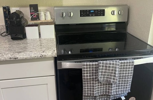 This cute one bedroom one that is perfect for families or two couples. The space has two queen beds as well as a dresser that can double as a baby changing table. There is an oven/stove perfect for cooking a nice dinner, lots of kitchenware, a mini fridge with small freezer space, a microwave, toaster and Nespresso machine. We recommend not bringing any animals, including service animals. We have 2 livestock guardian dogs that free roam the property and they are not friendly with other animals