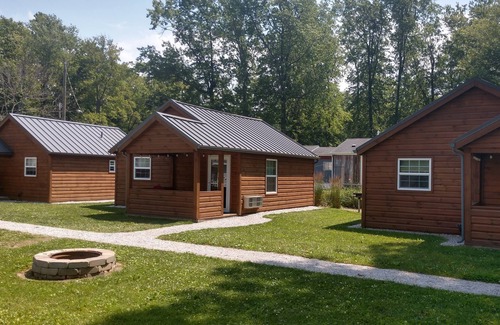 Welcome to East End Cottages (Cabin #2 of 4). This 440 sq. ft. cabin was completely renovated in 2015. Both bedrooms are furnished with a double size bed and with a pull-out sofa bed this cabin sleeps 6. The property, located only 300 feet from the famous Geneva-on-the-Lake Strip, enables easy walking access to all of the local attractions; while our cozy cabin provides for a quiet escape from all the festivities. There are 3 additional cottages located on this property and combined can accommodate large parties up to 25. Perfect for family reunions, bachelor/bachelorette parties, and wine tours.