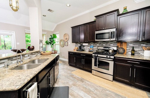Stay comfortably in Richmond at this 4-bedroom house. With 1 king bed, 2 queen beds, 1 full bed, and a futon in the kids' playroom, this awesome property is perfect for families or groups. Enjoy the office space which can be used as a fitness room, Wi-Fi, and cozy living room, covered patio and BBQ grill outside. Three bathrooms with a shower, bidet, and bathtub ensure everyone's comfort. Experience the magic of Richmond at our house, located in a secured and residential neighborhood, featuring state-of-the-art fitness center, hiking trails around lakes, Junior Olympic sized pool, recreation center, volleyball court, Dog park, Tennis court and soccer field. Close to Highway and local attractions, shopping and dining and ideal for mid to long term stays.