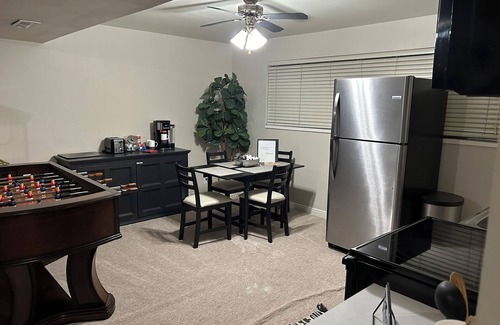 Your family will enjoy the privacy of this basemen apartment, with 65" TV with Netflix, Disney+ HBO, message chair, king size bed, a second room with a twin and one size futon, 2 individual memory foam foldeable mattress, out size fire pit, and gym equipment