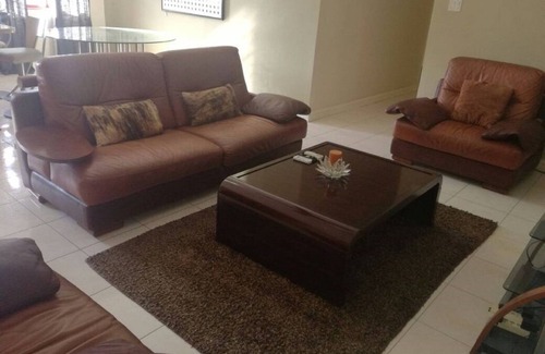 This modern furnished unit offers privacy, security and comfort. Just bring your suitcase. Situated within a lovely gated community, this apartment includes; complimentary Wi-Fi, Cable and In-Unit washer and a clothes line for drying. The bedroom has a King-Size bed and a 40in smart TV aswell as an A/C unit. The living room is also equipped with an A/C unit, couches and a 55in smart TV. This beautiful home also has a fully equipped kitchen with bar-style dining.