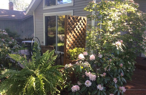 Your private studio cottage includes a queen bed, sitting area, cathedral ceiling, private deck, pull out couch (single), full bath (shower, no tub), wet bar with sink, refrigerator, microwave, flat screen TV, WiFi, off-street parking, air conditioning, heat and ceiling fan (seasonal). DOGS WELCOME FOR ONE-TIME $75 FEE.