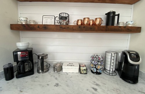 Main level: California King Master Bedroom and private bath with jacuzzi tub and separate shower, wireless high speed internet, great room with piano and ceiling fan that opens to deck with gas grill, Trex Adirondack seating with side tables and a spiral staircase to lower level patio, TV (with Directv), DVD with 136 movie library, dining room that opens to a screened porch with ceiling fan, table and chairs, half bath, laundry room with full size washer and dryer, fully equipped kitchen with spices, salts & pepper, cooking oil, Bluetooth speaker, island with seating for four, large deep sink with garbage disposal , separate vegetable sink with garbage disposal, TV, double oven, gas stove top, dishwasher, microwave, blender, Margaritaville frozen drink mixer, griddle, toaster, rice maker, 7 qt. Crock pot, butler's pantry with 46 bottle dual zone wine refrigerator and complimentary coffee/tea bar with two coffee machines (Keurig, a twelve cup Ninja coffee pot with filters & a Vertuo Nespresso), complete with Dunkin, & Starbucks K-cup coffees, Dunkin ground coffee and Bigelow teas, French press, electric kettle, and coffee bean grinder, plus many more additional cooking amenities.