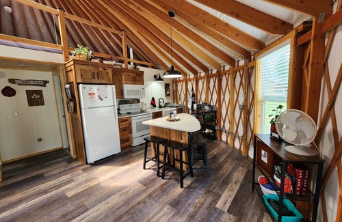 It's a great place to get away from the hustle and bustle of everyday life and to take in all the natural beauty that our Big Sky Country has to offer. It is a perfect place to unplug, relax, and recharge. This 30' diameter Yurt was built with an Arctic Winter insulation package, so it is designed to be cozy warm in the winter and nice and cool in the summer. The Yurt is fully equipped, sleeps 6 comfortably, has AC/Heat, hot water, nice full kitchen, and breathtaking views. It consists of an open living/kitchen great room, futon folds out for sleeping/relaxing, loft area with queen bed, one bedroom with queen bed, one bathroom with two sinks and a walk-in shower, and a spacious deck with patio furniture. Just off the deck is an outside BBQ, trash can, picnic table, propane fire pit with seating, fun outside games, seating down by the river, and the Clark Fork River is just steps away.