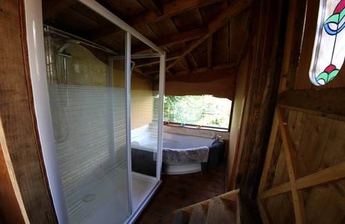 There is also a compost loo with a sink and a bathhouse with shower, sink and luxury corner bath with a fabulous view - all with hot and cold running water! Total off-grid luxury!