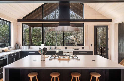 Tucked away in the Blue Ridge Mountains, Wander Black Mountain is a modern Scandinavian cabin designed by architect Michael Neiswander. Just outside Black Mountain and a short drive from Asheville, this retreat provides a unique design experience with a feeling of "sleeping in the trees." With accommodation for up to 12 guests, floor-to-ceiling windows, and a private hot tub, this home is perfect for a family getaway or group retreat.