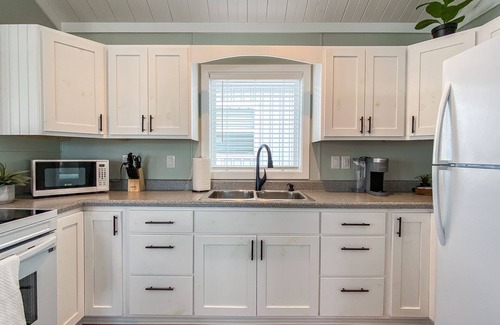 Seaclusion, the third Houseboat in our "fleet" of 4, is located on Pensacola Bay in Seville Harbour Marina (facing west). This two-bedroom, one-bathroom floating getaway sleeps 4 people (2 queen beds) and features a fully equipped kitchen with full-size appliances and a banquette dining table with plenty of seating. Relax on the front porch and enjoy your morning coffee, a view of the boats or a glass of wine with the sunset.