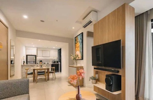 This 2 Bedrooms Apartment provides accommodation with for your convenience. This Apartment features many amenities for guests who want to stay for a few days, a weekend or probably a longer vacation with family, friends or group. This Apartment is less than 1 km from District 1, and gives visitors the opportunity to explore it. The rental Apartment has 2 Bedrooms and 2 Bathrooms to make you feel right at home.