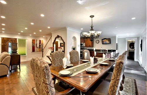 This 10 people overnight permitted vacation house which was completely remodeled recently is provided with luxurious furniture, fully functioning kitchen with top-of-the-line appliances and granite counter tops, and hardwood and slate floors. The bathroom floors are hydro heated which, is awesome in the winter after skiing... The ground floor of the house not only connects to the backyard but also with the living room, kitchen, dining room, and a half bathroom adjacent to the garage to make it a nice family experience. The living room is set up with 2 sets of sofas for entertainment and snuggle facing a powerful Napoleon gas fireplace. There is also a sofa sleeper near the fireplace for large family gatherings. On the second level are all the bedrooms facilities. The Jr. Master with a queen bed and a full bathroom for privacy, the second bedroom is set up with a queen bed; the 3rd bedroom comes with bunk beds (full on the bottom, twin on top and a pullout twin under the bed set). The 4th bedroom is the master with a king bed with a private full bathroom. There is a full bathroom on the second floor in the hallway for all to share. As a family or group of friends, you can enjoy cocktails on the spacious patio or the whole backyard with the large saltwater swimming pool in the summer (n.b.: seasonal feature.) and the large hot saltwater tub year-round. The large deck is set up with gas fire pit table which makes for great times in the fresh Tahoe outdoor air year-round.