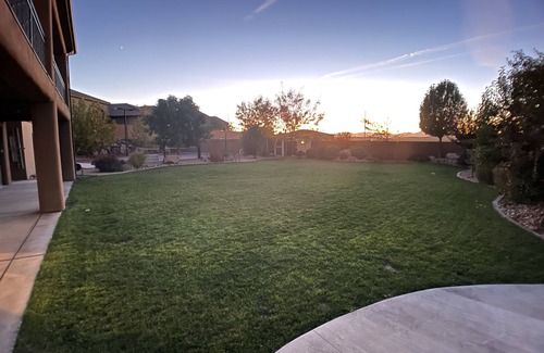 Come enjoy Southern Utah at its finest in a safe, quiet neighborhood with plenty of comfort. Enjoy a lighted sports court with basketball and pickle-ball. Relax in this 2 bedroom apt. with an extra vanity, one full bath, laundry room with a full size washer dryer, small fridge/freezer, microwave, coffee maker, and plenty of space (just under 900 sqft.) private outdoor patio. Located 12 miles from St. George, 3 miles from Sand Hollow State Park and sand dunes, 30 miles to Zion National Park. Quail Lake State Park, Snow Canyon State Park, Tuacahn outdoor amphitheater close by. This is a downstairs apt with a private entrance. Owners on site and live upstairs (please be aware of possible noise from a family living upstairs) Bedroom one has a king bed, closet, love seat, two nightstands, dresser, with usb and plugins, and extra vanity, this bedroom has a vanity in it and is connected to the full bathroom. Bedroom two, has an additional king bed, love seat, lots of space. Laundry/food service area includes small refrigerator/freezer, microwave, coffee maker, washer, dryer, and simple dining bar. Outdoor area includes private patio with sitting area, also has access to a basketball/pickle-ball court with equipment provided, this court has lights and can be used from 7am to 10pm. Parking provided in front of the house, if you have a trailer, please contact owners for details. Parking must be off the street with access to the private entrance on a sloped concrete sidewalk. NO PETS, NO SMOKING on property of any kind.