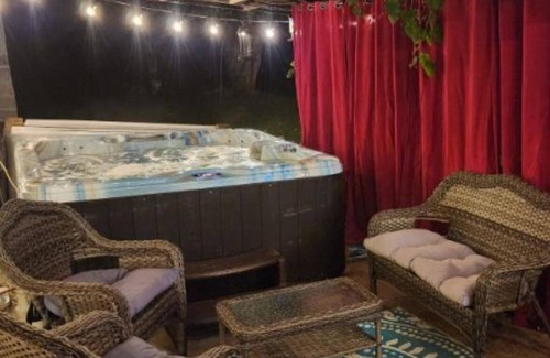 This 1850’s renovated farm house has old time charm and new amenities. The master bedrooms features a king bed and on-suite bathroom with shower/tub combination. The beautiful upstairs bedroom has a queen bed, electric fireplace, and half bath just across the hall. There is also a room made for relaxing with a soaking tub with bath fizzes and candlelight. Grab your book or choose one from the bookshelf and let your cares soak away. The last bedroom has 2 twin beds ensuring a good night's sleep for all guests. With amenities like WiFi, AC, coffee maker, blender, crockpot, toaster, and microwave, your stay will be convenient and stress-free. The 2.5 bathrooms come equipped with towels, a hair dryer, and limited toiletries, Outside immerse yourself in the 5-person hot tub, play a game of ping pong, corn hole, or just relax by the fire and make smores. The soothing atmosphere of this property will create unforgettable memories. Your four-legged family members will enjoy their time as well with a large fully-fenced back yard to play ball in. There are 4 restaurants within walking distance and the excitement of Tioga Downs Racetrack and Casino just a 5 minute drive away.